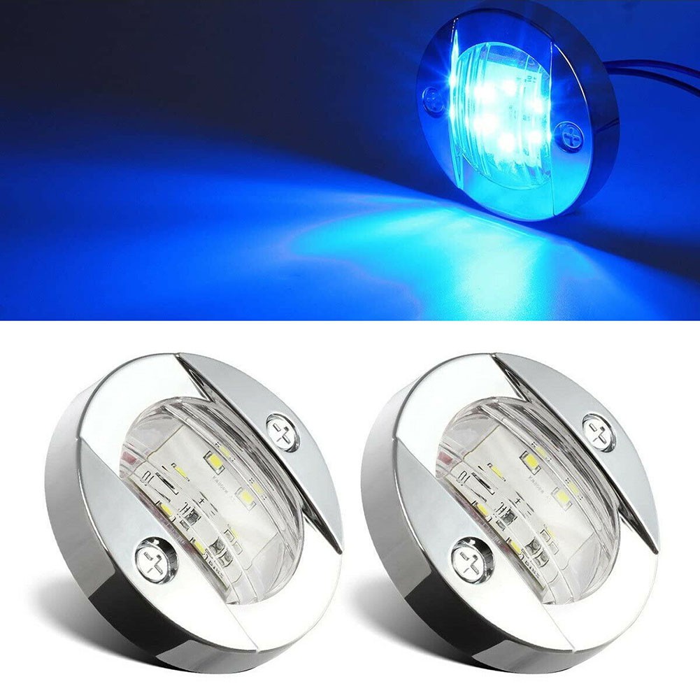 Amazon Com Tctauto Marine Boat Led Blue Lights Interior Transom Cabin Courtesy Stern Navigation Lights 3 Inch 12v Round Chrome Clear Lens Waterproof Pack Of 2 Automotive