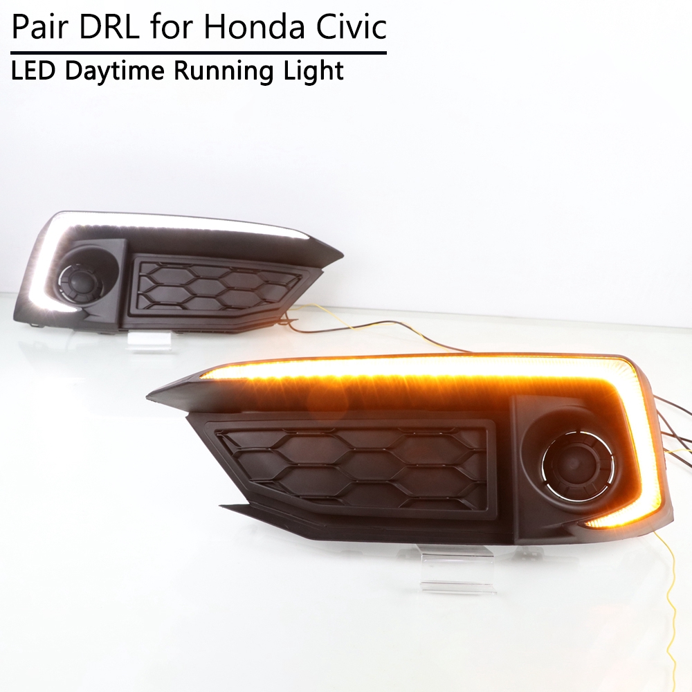 2pcs For Honda Civic Hatchback 2016 2017 2018 2019 Daytime Running Light Led Drl Fog Lamp Driving Lights Yellow Turn Signal Lamp Car Light Assembly Aliexpress