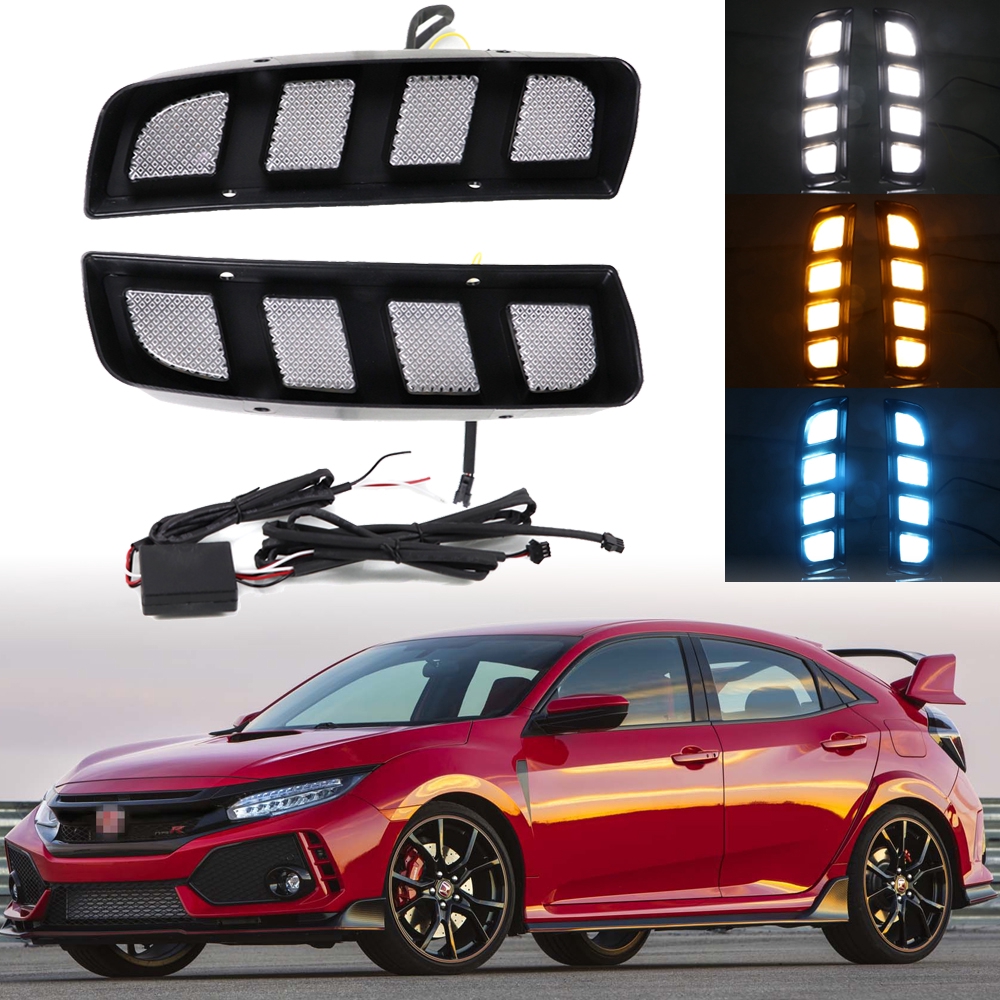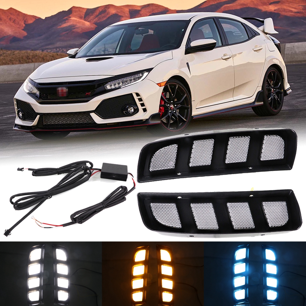For Honda Civic Type R 2016 2019 Drl Daytime Running Light 3 Color Led Fog Lamp W Dynamic Turn Shopee Indonesia