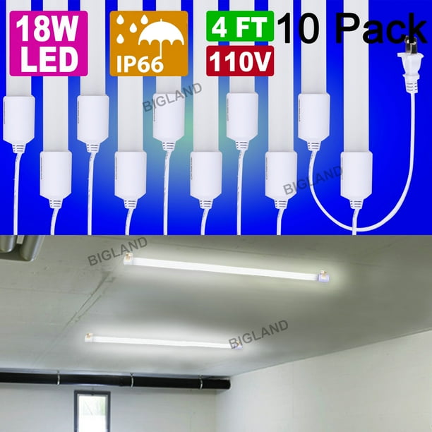 8ft led shop light fixture 8 foot led lights72w 9500lm 6000k led shop light 8ft 96 t8 integrated led tube linkable led bulbs for garage warehouse v shape plug and play clear lens 10 pack 47 out of 5 stars 368. Buy 10 pack led shop light 4ft t5 integrated single fixture 22w 2200lm 6500k super bright white linkable shop light utility shop lights corded electric with built in onoff switch. 10 pack led shop light 4ft 54w garage ceiling lights ceiling fixture dimmble.