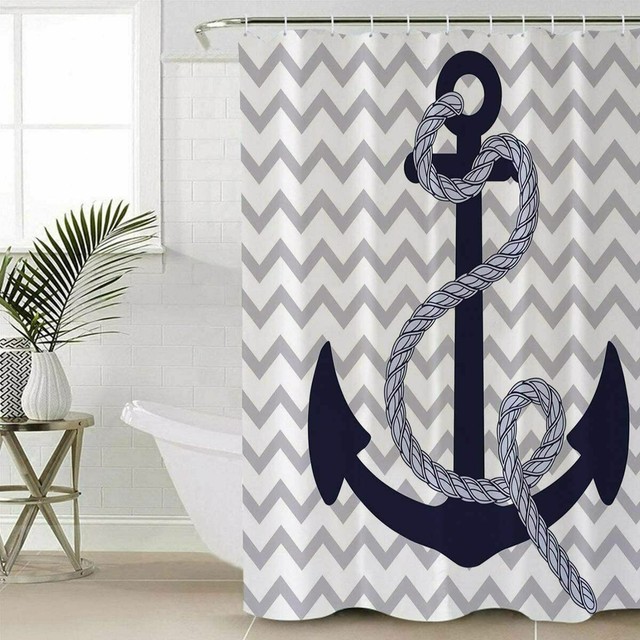 Nautical Anchor Shower Curtain Polyester Fabric Bathroom Decor