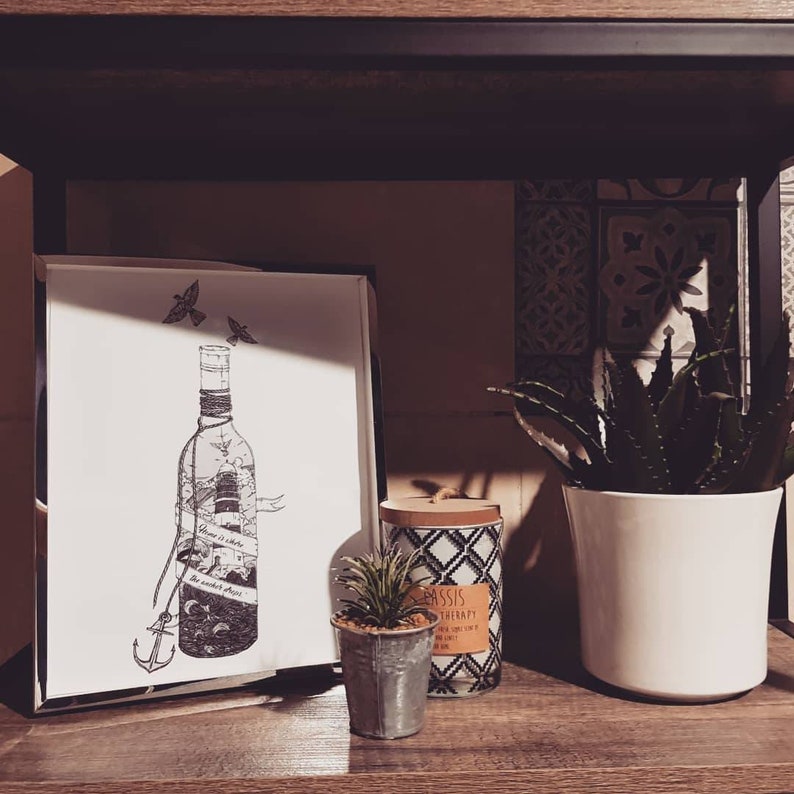 Black And White Lighthouse In A Bottle Illustration Quote Sea Etsy