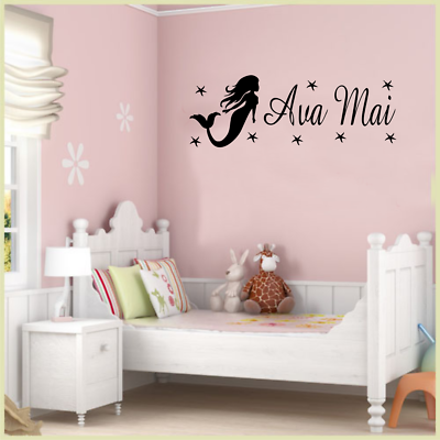 Girls Personalised Name Mermaid Wall Art Sticker Quote Bedroom