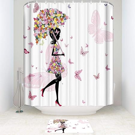 Fashion Girls Waterproof Bathroom Decor Bath Curtain Non Slip
