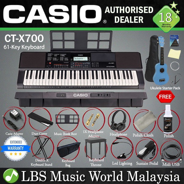 Casio Ct X700 61 Key Portable Keyboard Electric Piano Full Package With Piano Bench Ukulele Ctx700 Ctx 700 Shopee Malaysia